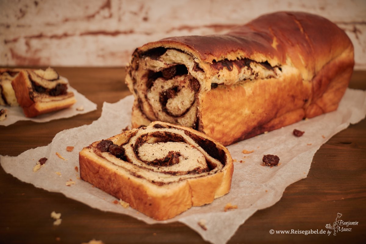 Wir haben dieses Rezept in einer etwas anderen Form ausprobiert: Statt klassisch als Zopf oder vom Blech kommt der Hefekuchen diesmal in die Kastenform. Das macht ihn nicht nur super handlich, sondern sorgt auch dafür, dass er richtig schön saftig bleibt. Außen goldbraun, innen fluffig und mit einer köstlichen Kakao-Rosinen-Füllung – einfach ein Traum! 😍