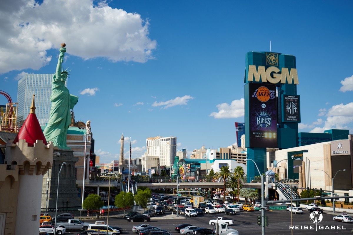 Für mich ist es bereits der zweite Besuch in Las Vegas. Und trotzdem beeindruckt mich die Stadt wieder sofort. Besonders der Strip ist einfach überwältigend. Groß, bunt, laut, voll. Las Vegas ist definitiv kein Ort für einen dreiwöchigen Urlaub, aber ein paar Tage machen unheimlich viel Spaß.