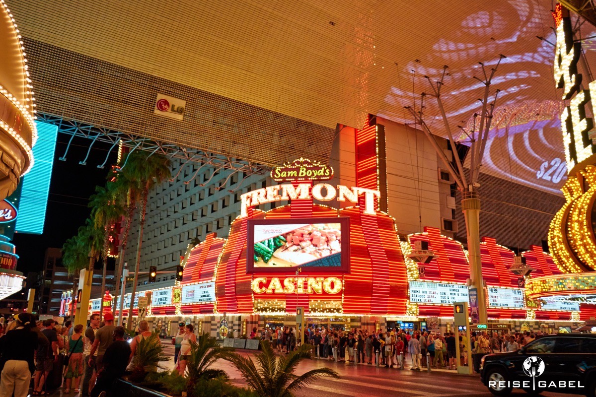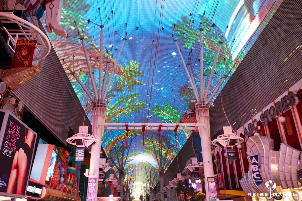 Auch die Fremont Street steht auf unserem Plan. Ein völlig anderes Las Vegas Gefühl, älter, enger, aber mit ganz eigenem Charme. Die Lichtshow über der Straße sorgt vor allem abends für eine besondere Atmosphäre.