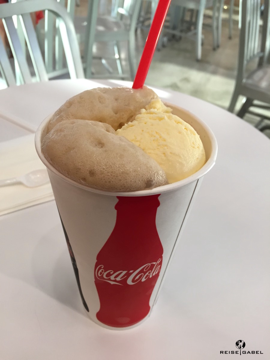 Bei Coca-Cola probieren wir uns einmal um die Welt. Acht verschiedene Cola Sorten aus unterschiedlichen Ländern. Manche sehr spannend, manche eher gewöhnungsbedürftig. Dazu gönnen wir uns einen Vanilla Cola Float. Vanilleeis mit Cola klingt komisch, schmeckt aber erstaunlich gut.