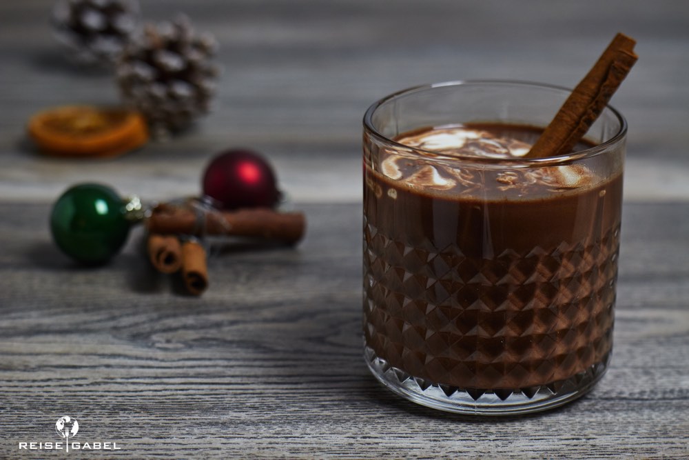 Wer etwas ohne Alkohol sucht, kann ja mal die heiße Schokolade mit Marshmallows und Chai Sirup probieren.