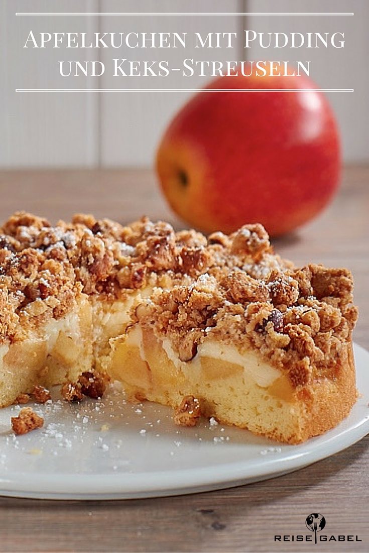 Apfelkuchen mit Pudding und Keks-Streuseln
